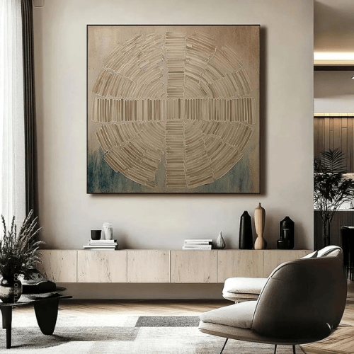 Celestial Echo Textured Canvas Reflecting Time Harmony Within Modern Interiors