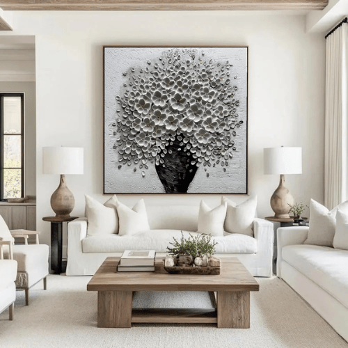 Crafted on gallery-wrapped, high-quality canvas, Flourish Essence adds dimensional artistry to any interior. The textured blossoms catch the light, changing subtly through the day—offering a serene yet striking focal point that embodies nature’s elegance reimagined.